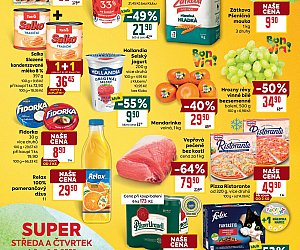 Billa je síť supermarketů která se soustředí především na prodej potravin a drogerie. I když má o něco vyšší ceny, kompenzuje to kvalitou, např. u ovoce a zeleniny patří rozhodně ke špičce. Akční leták bývá platný od pondělí nebo úterý příštího týdne. Aktuální týden pak můžete využít zvýhodněných cen až do neděle. Příjemné na Bille je to, že má regály dál od sebe a nejste tam tak příliš namačkaní, nahrává tomu i to, že jde většinou o větší prodejny. Slevový leták vydává už několik let a tak má s akcemi mnoho zkušeností. Bila leták na tento týden nemá moc stran a dobře se v něm orientuje. www.billa.cz